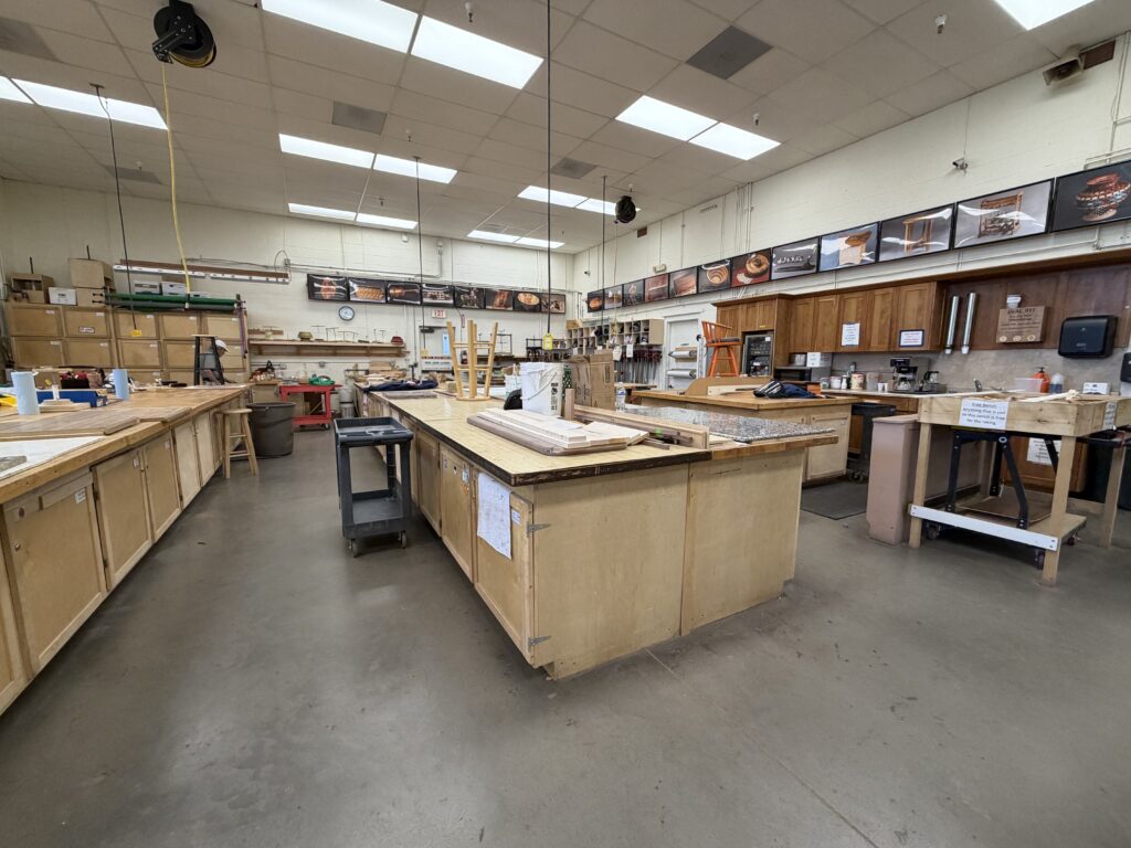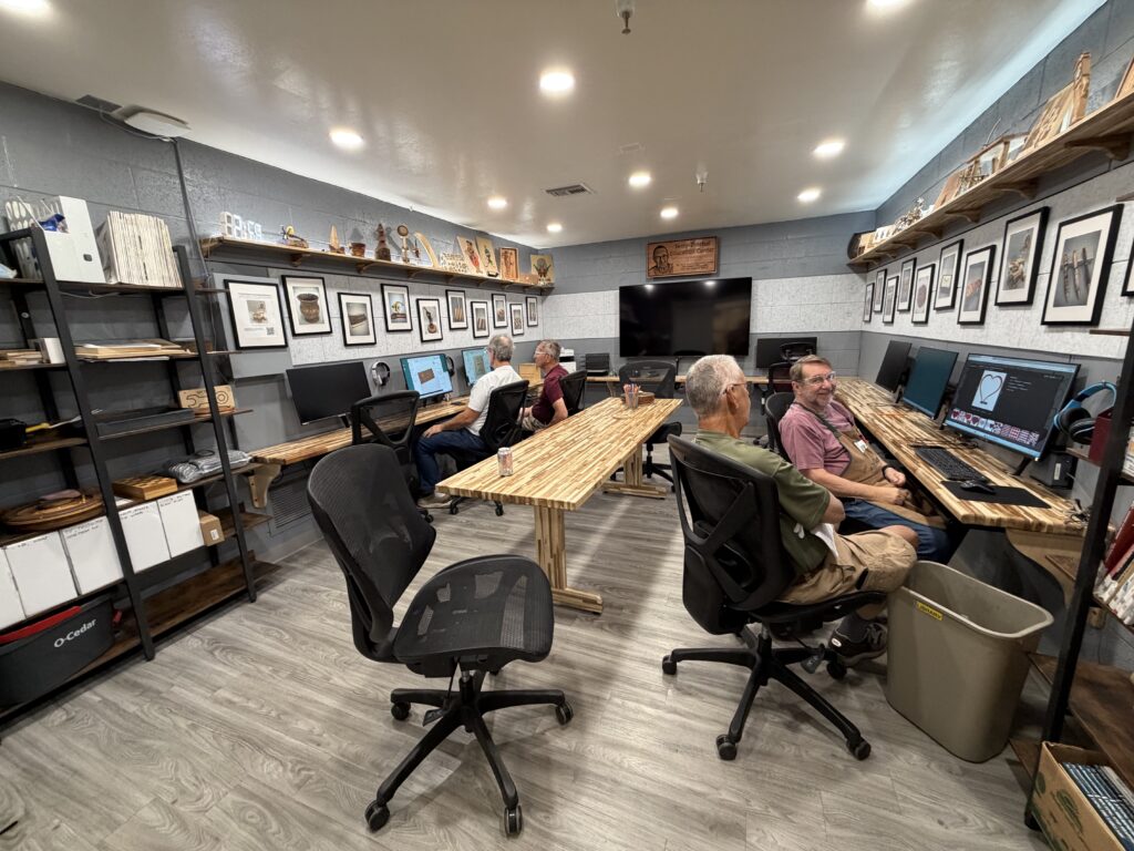 The assembly room is where things happen like gluing, planning, and fellowship. There is a break table (to talk or the occasional cribbage game while glue is drying) and also over two hundred lockers that are available for members to rent.