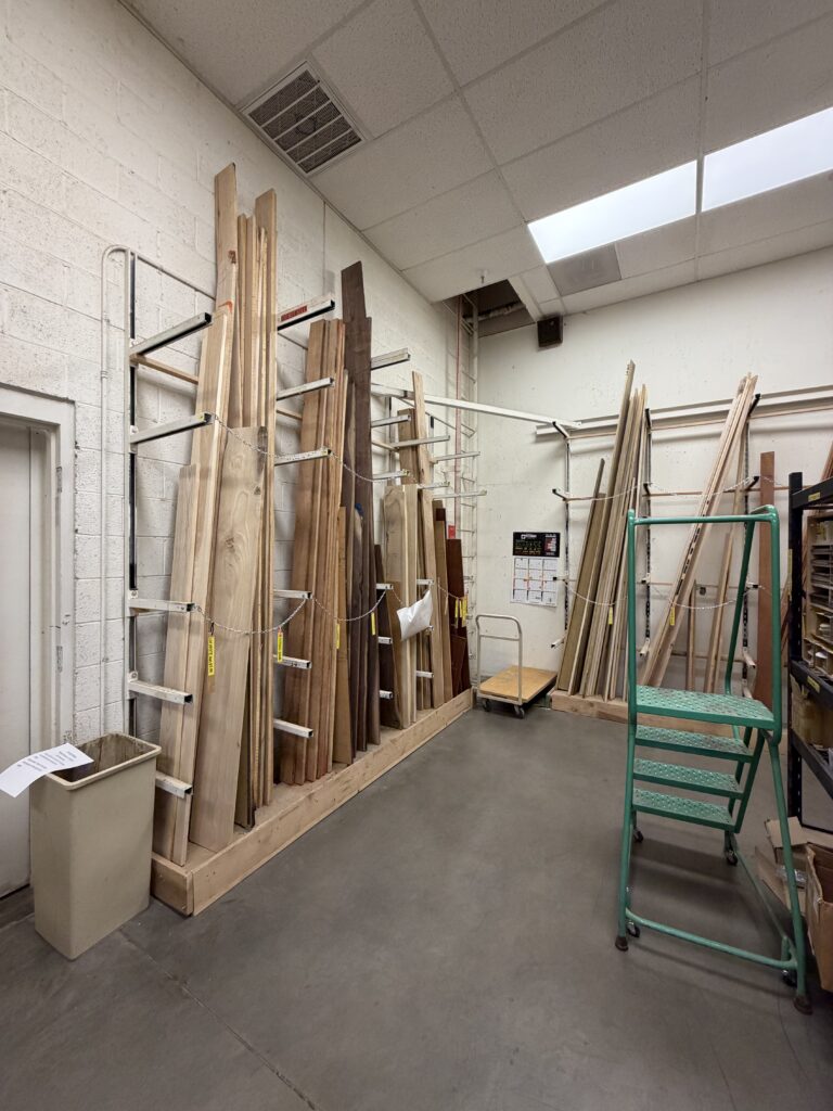 You have access to a supply of material, you may need to buy wood, sandpaper, glue, dowels, or some other supply to complete a project. Items, including wood are sold at slightly above cost to give members the best prices. Usually in stock are walnut, maple, oak, poplar and many others. Special orders for a project can be handled. Remember that the members operating the lumber room are all volunteers. The lumber room is not a commercial enterprise; It is a privilege.